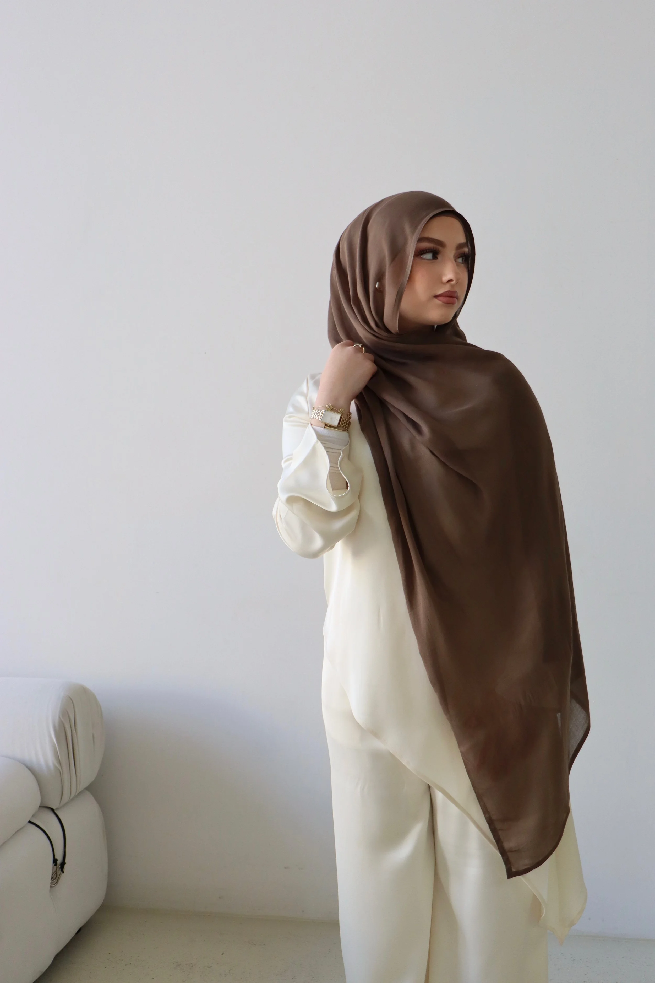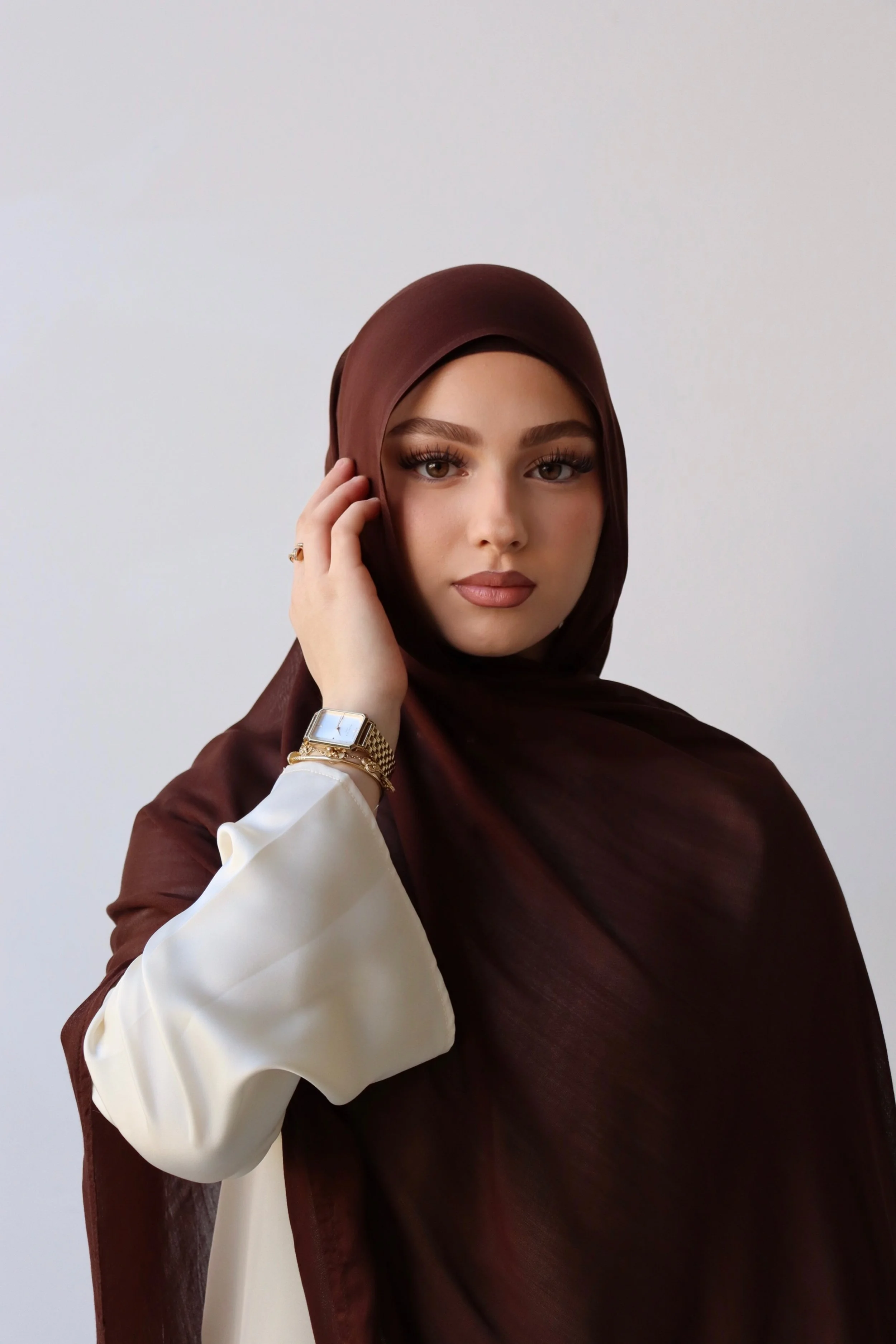 Leyna introducing Maxi size Modal veils that come as a set with custom dyed, open ended Cotton matching caps, in a wide variety of tones to suit all skins! Redefined for a better full back & top half coverage. Quality Modal material that doesn’t slip off your cap, with a length of 185cm for a modest look. Along with double-stitching as a finish for a seamless, neat look.