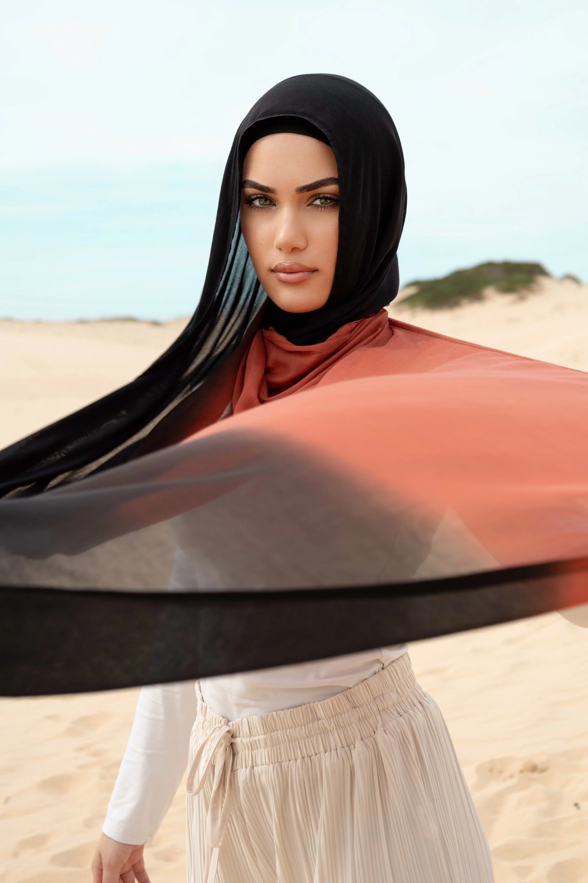 Why not add a pop of colour to your collection? Have fun experimenting with your look! With LEYNA VEILS' Ombre Two-Toned Hijabs, the possibilities are endless. Be playful! Get yours today and let your outfit shine.